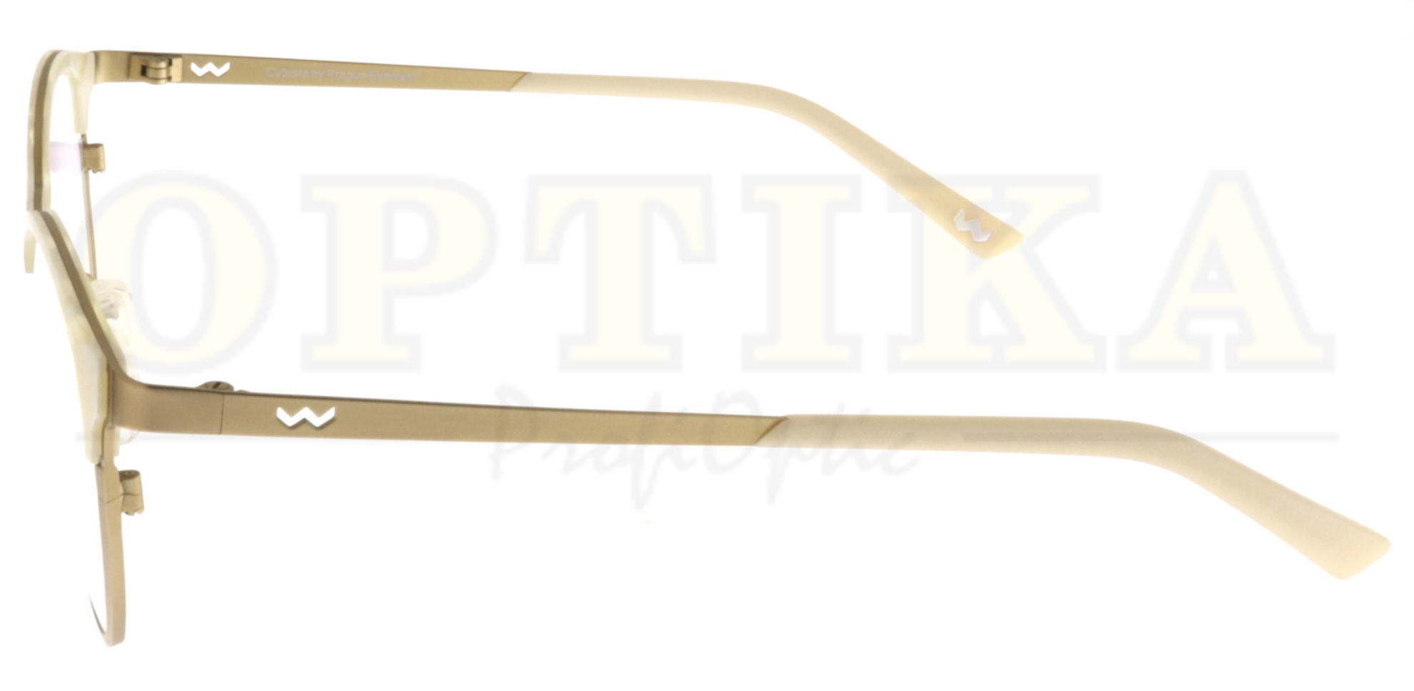 Barva plastové části očnice je matná žíhaná smetanová v elegantní kombinaci s matnou zlatou na kovové části. Stranice jsou matné zlaté s vtlačeným vzorem na koncovkách.