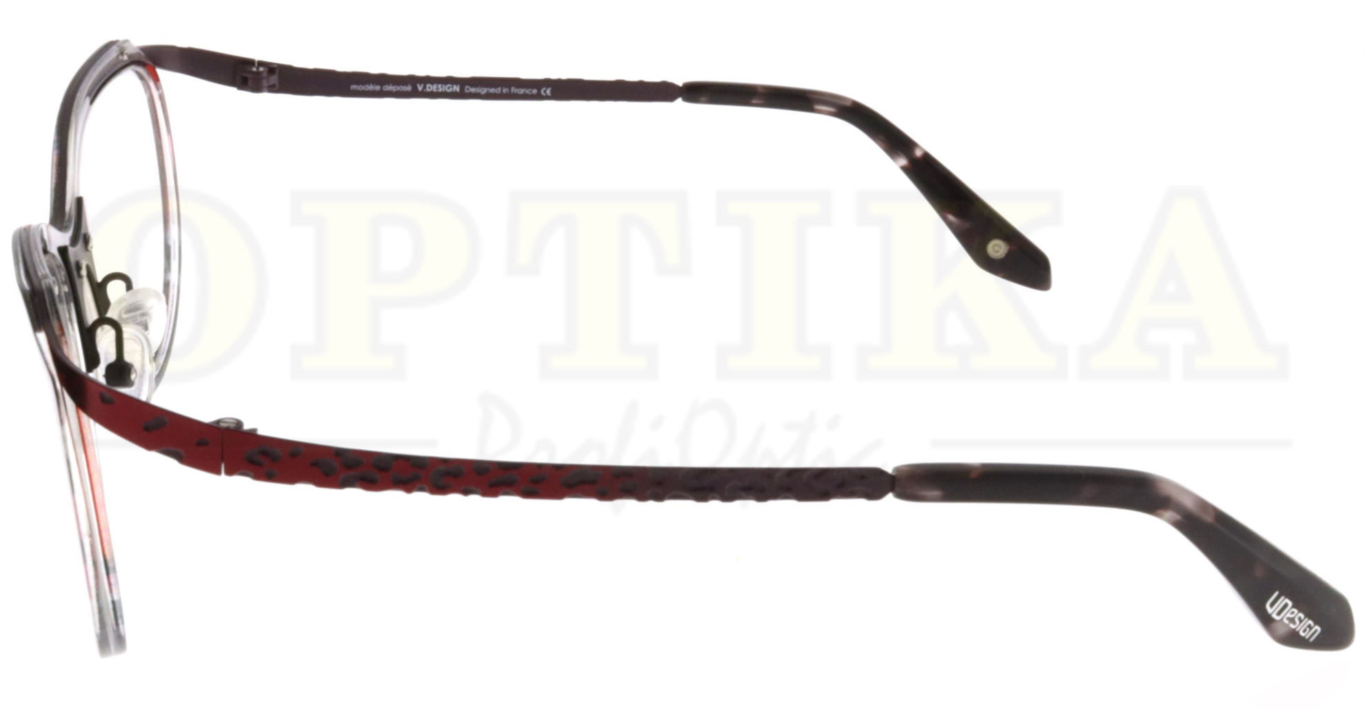 Obroučky na dioptrické brýle V-DESIGN 5796 NALA col.RO jsou součástí nejnovější V-DESIGN kolekce navržené pro ženy. Tento elegantní celorámový model od francouzské módní návrhářky odráží aktuální trendy v designérské oční optice.